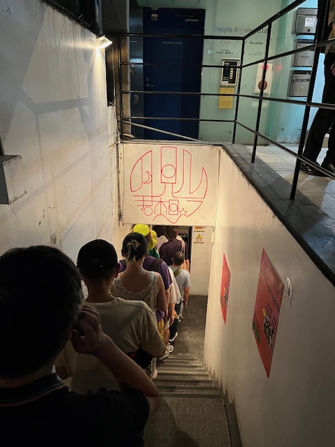 南青山の路地裏で整列、19:00過ぎから入場するとすでにDJが卓を回していて、フロアではそれぞれが思い思いに体をゆらしていました。