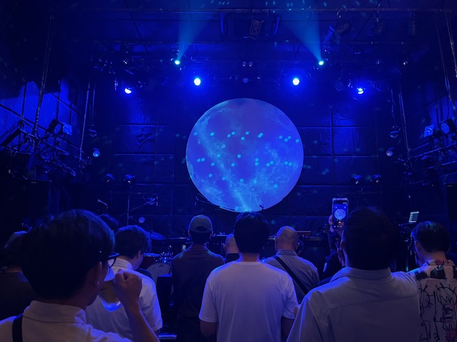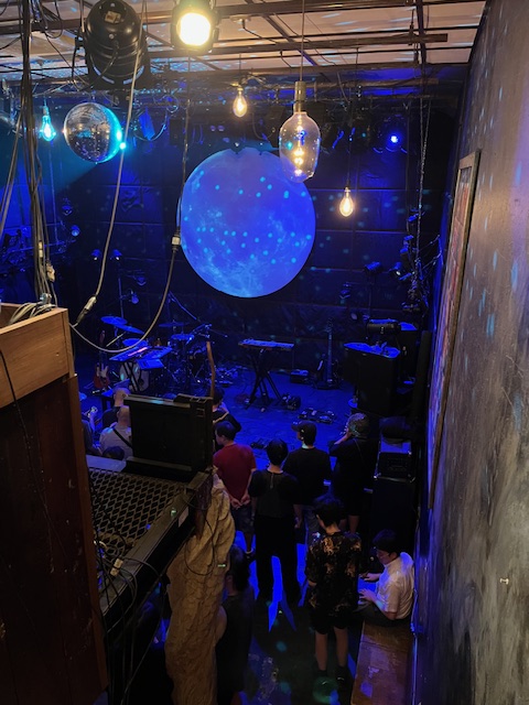 初めての「青山 月見ル君思フ」訪問です。ステージに浮かぶ大きな月のオブジェは、写真で見ていた通り幻想的でインパクト抜群。ただ思ったより小さな箱で、意外とアットホームなこじんまりとしたライブハウス、といったイメージです。
